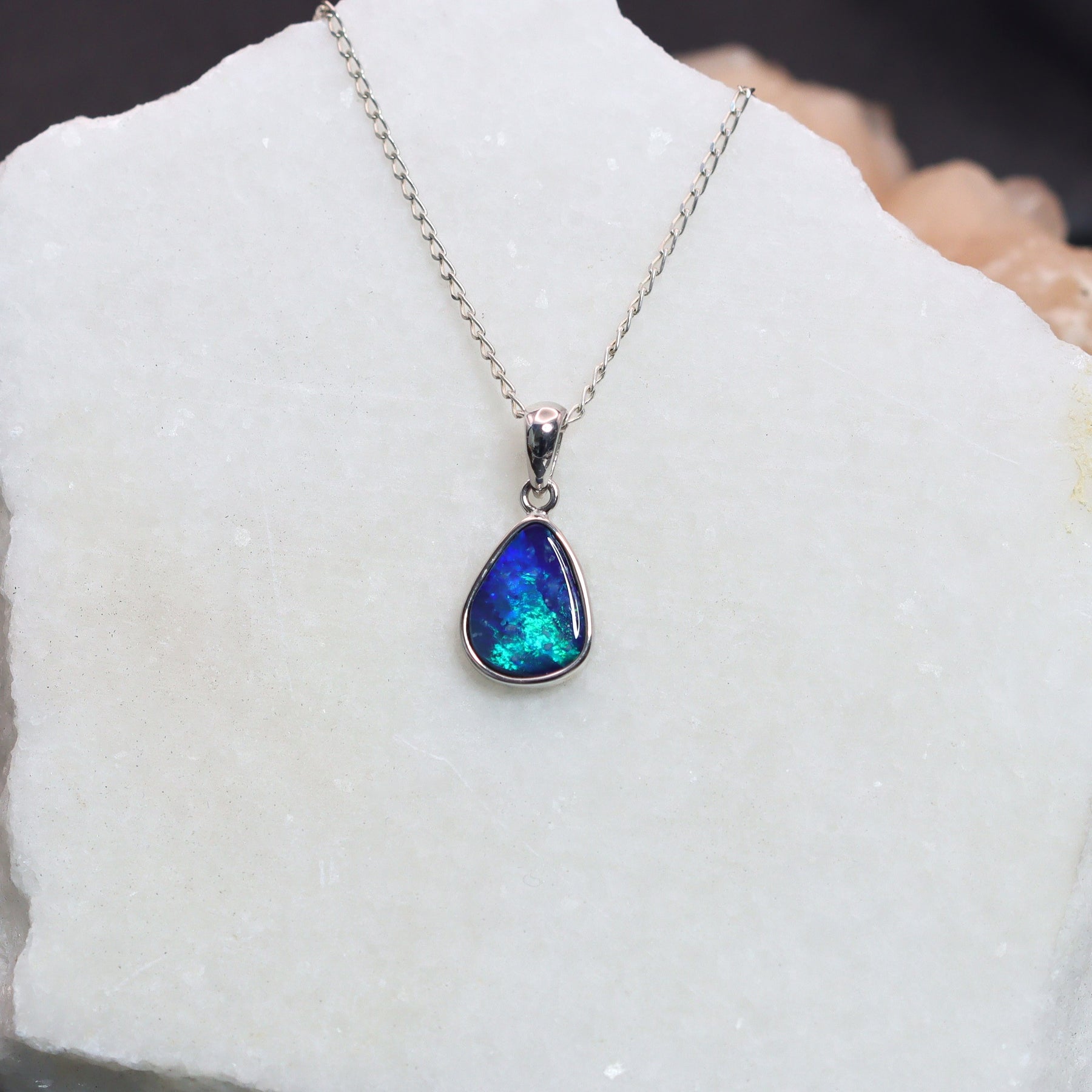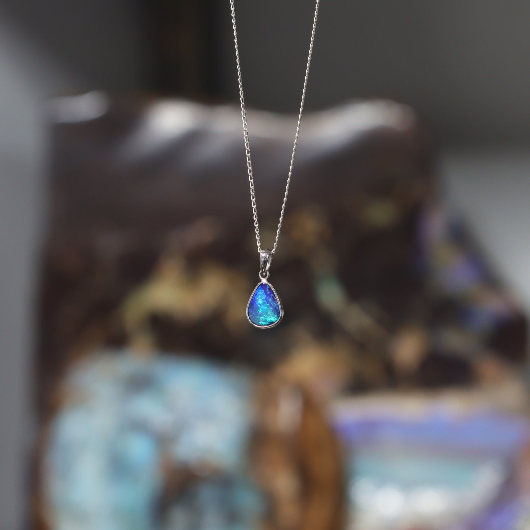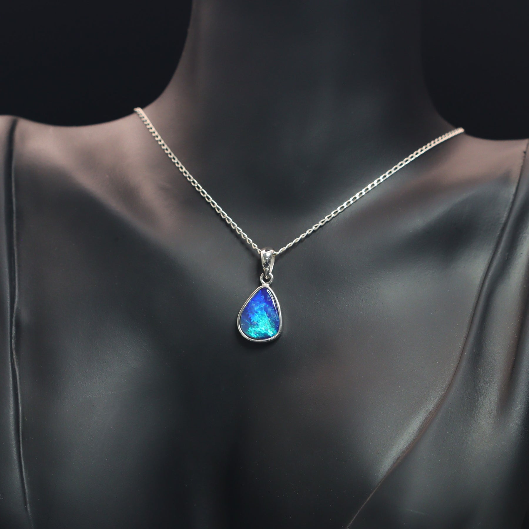 A stunning Australian opal doublet set in sterling silver, showcasing vibrant blue hues. Perfect for anyone who appreciates the captivating beauty and mystery of genuine opal.