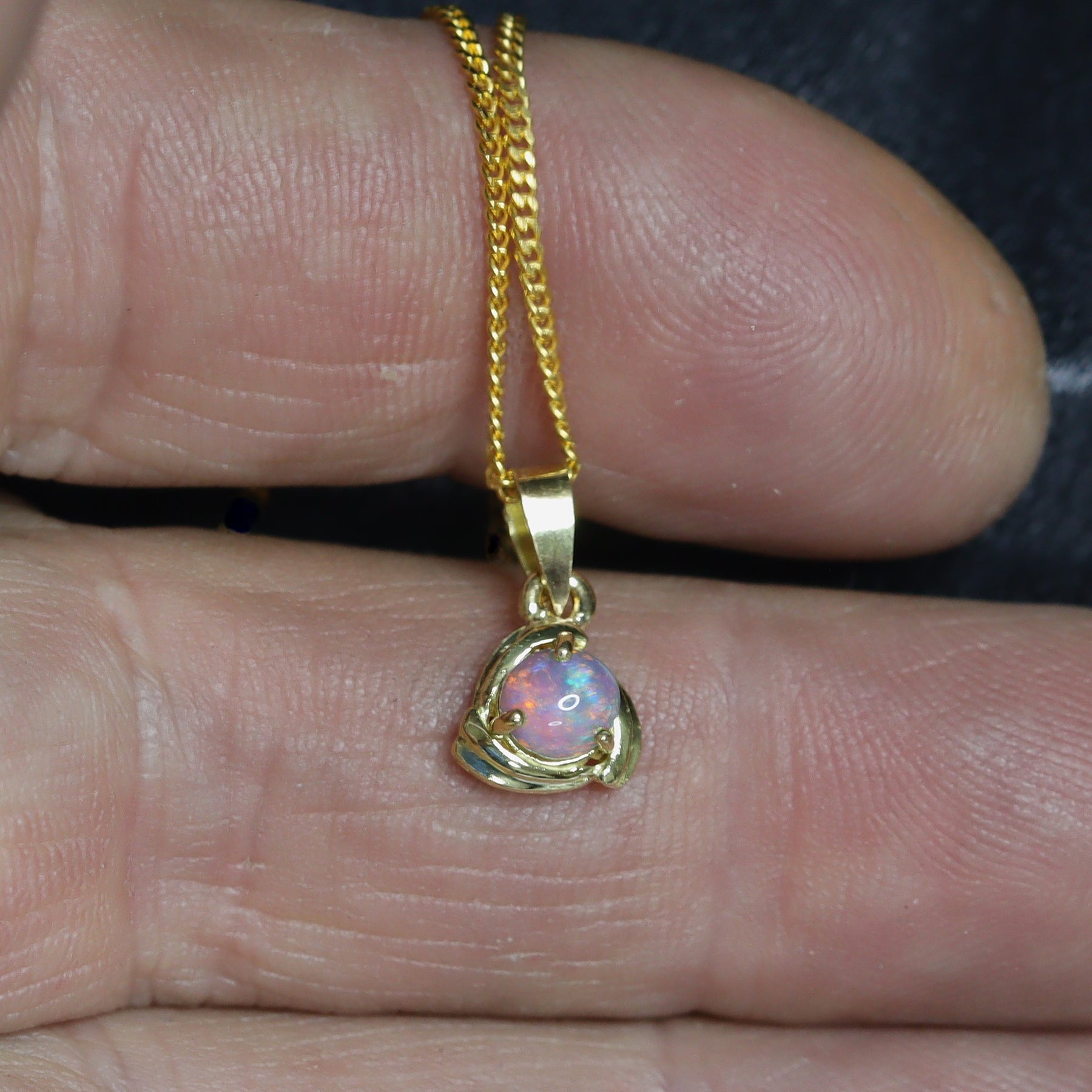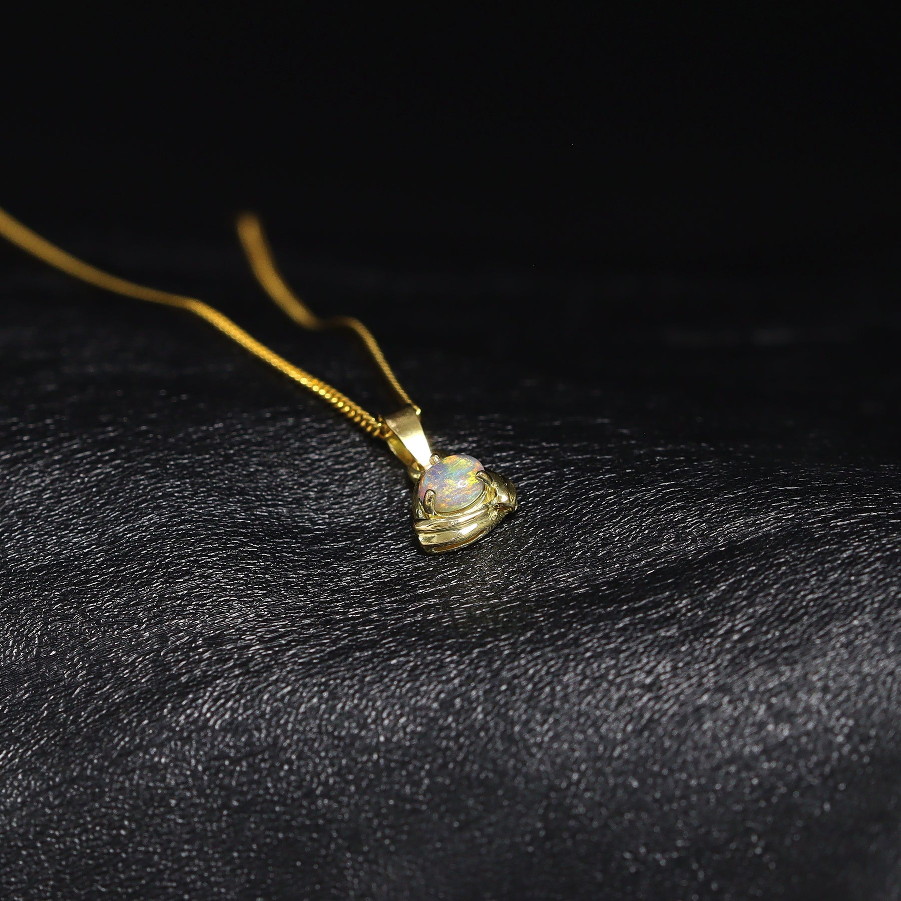 This pendant features a natural solid Australian Black Opal with a beautiful play of colour, mostly green. Set in 18K yellow gold, simply and beautiful. Handcrafted in Australia and ideal as a meaningful gift or personal keepsake.