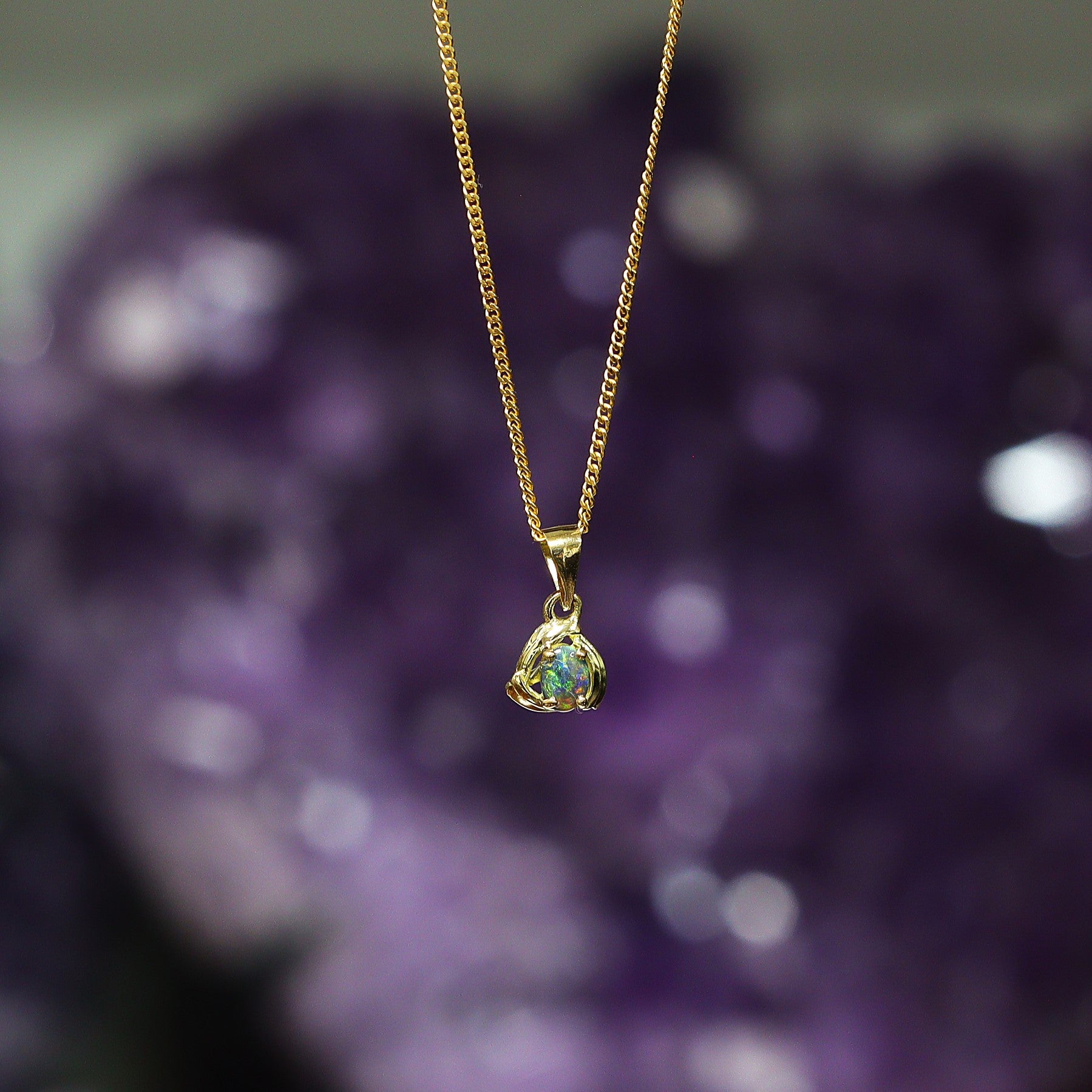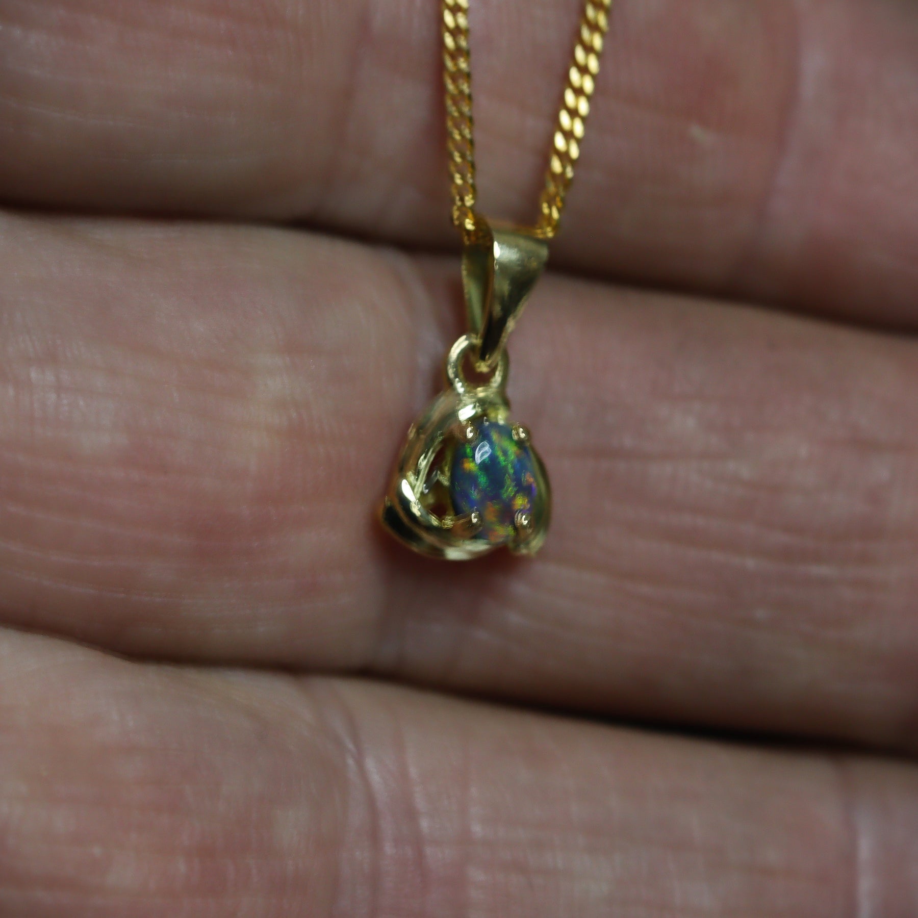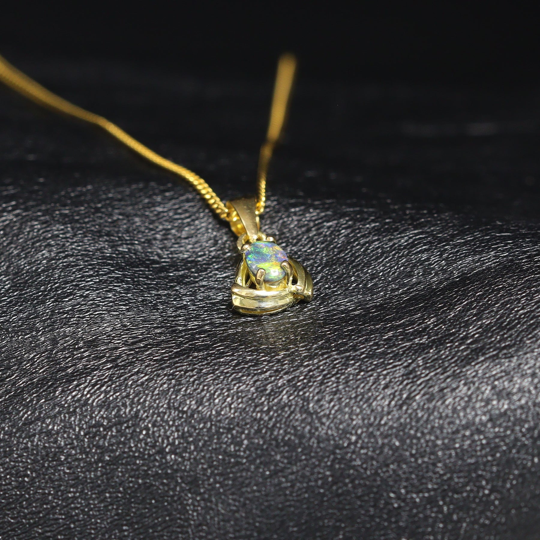 This pendant features a natural solid Australian Black Opal with a beautiful play of colour, mostly green. Set in 18K yellow gold, simply and beautiful. Handcrafted in Australia and ideal as a meaningful gift or personal keepsake.