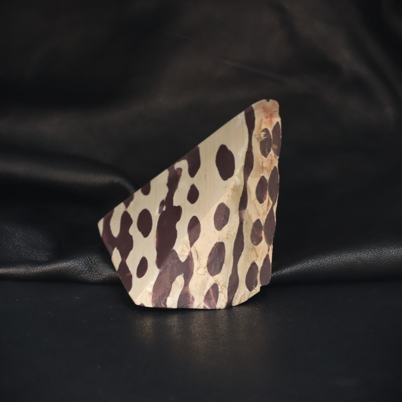 Zebra Rock is composed of fine-grained siliceous argillite and is easily recognized by its distinctive red bands or spots, which contrast beautifully against a pale background. Although its exact formation remains uncertain, geologists believe the patterns developed from sedimentary deposits in calm or deep water, with the red hues created by iron oxide.